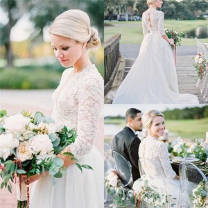 Details About Vintage Garden Wedding Dress Bridal Gown 3 4 Sleeve Open Back Lace Pearls V Neck
